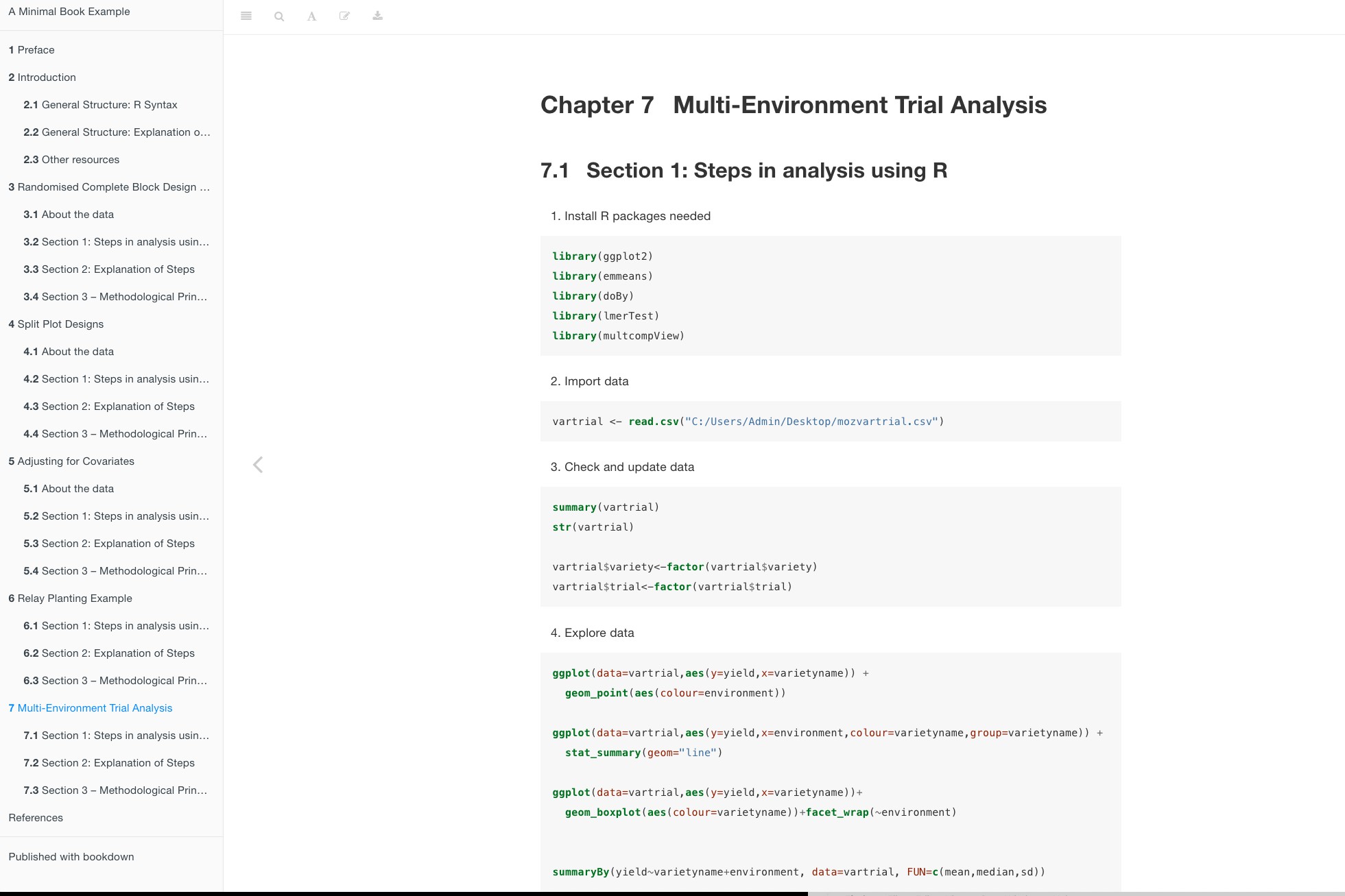 R tutorials covering standard analyses of data collected from standard on station experimental designs.