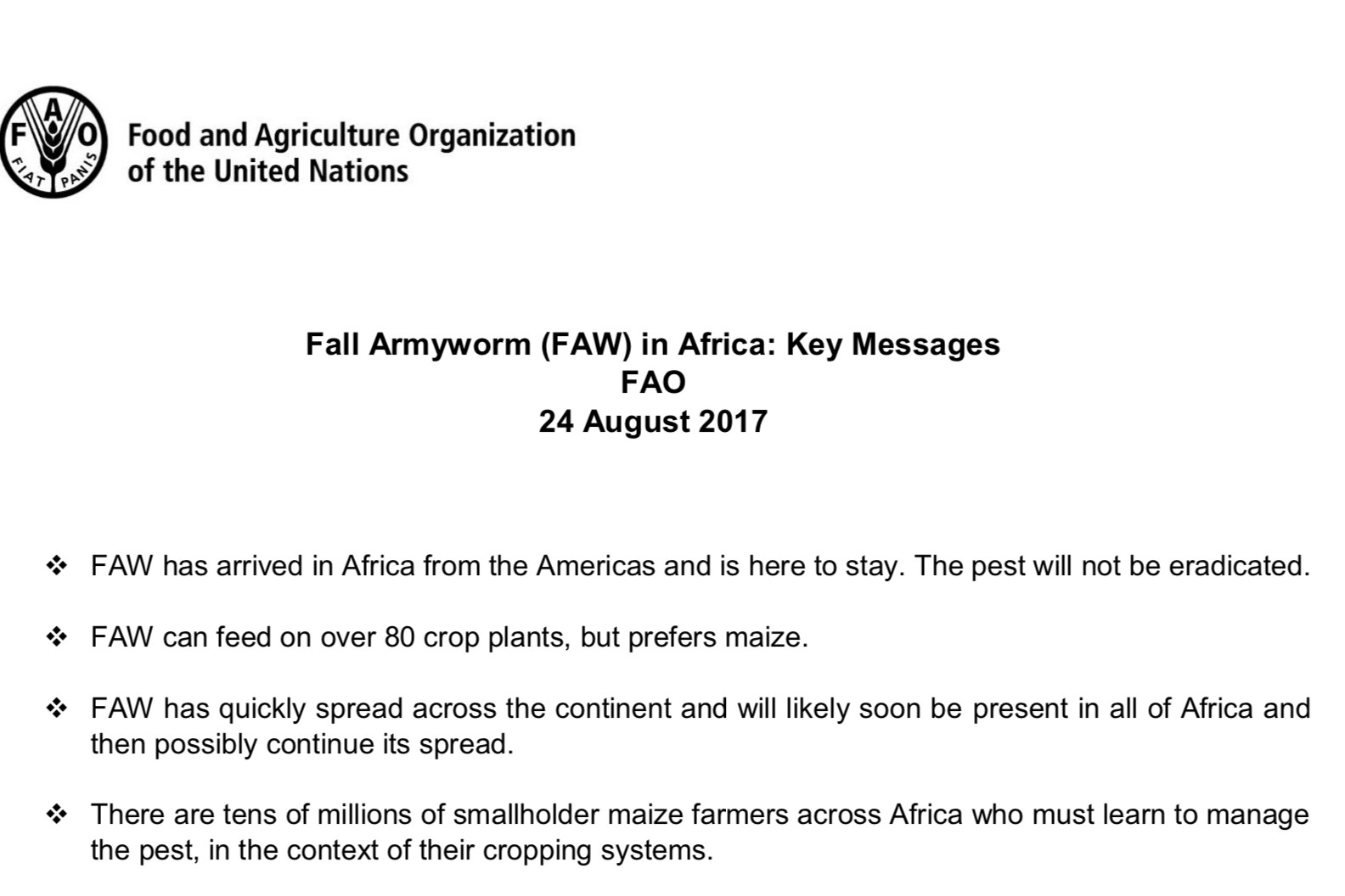 Fall Armyworm (FAW) in Africa: Key Messages
