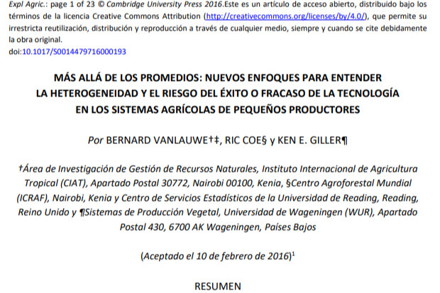 Más allá de los promedios: nuevos enfoques para entender la heterogeneidad y el riesgo del éxito o fracaso de la tecnología en los sistemas agrícolas de pequeños productores