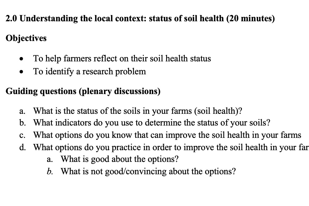 A session plan for an exercise to be conducted with Farmer Research Networks (FRNs, researchers and extension...