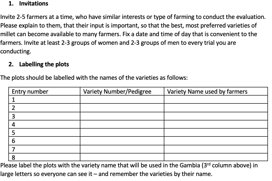 An outline for conducting a meeting with farmers with the objective of selecting farmers to participate in a F...
