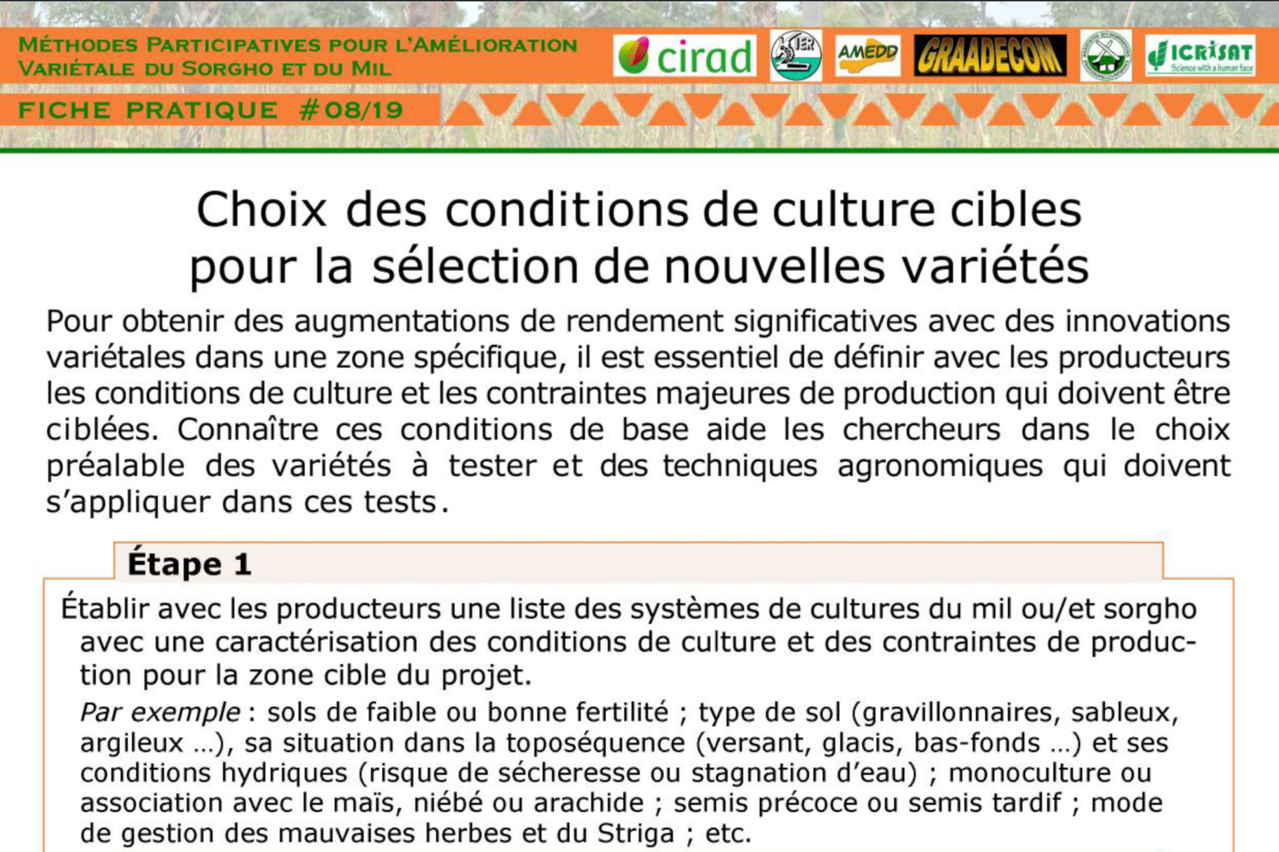 Methodes Participatives Pour L’amelioration Varietale Du Sorgho Et Du Mil: Choix des conditions de culture cibles pour la sélection de nouvelles variétés