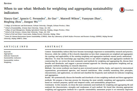 When to use what: Methods for weighting and aggregating sustainability indicators